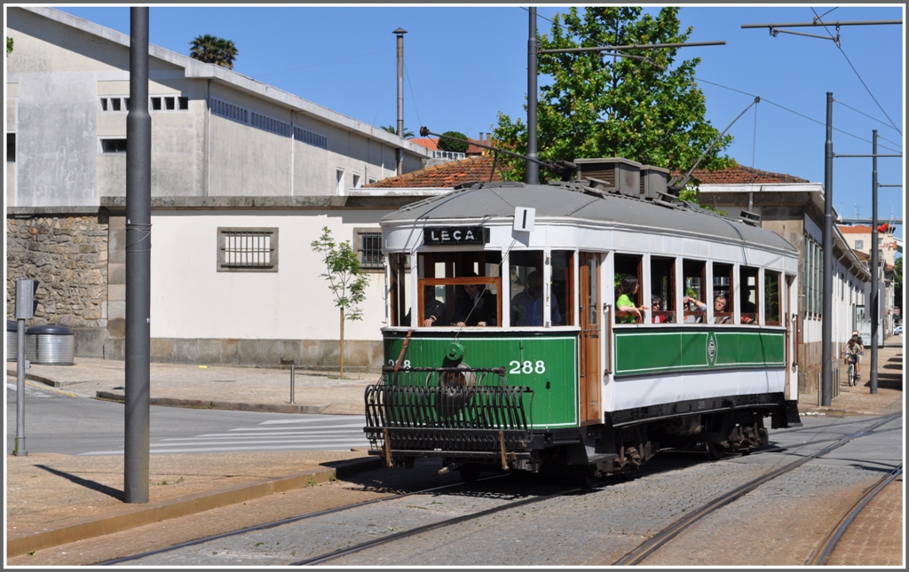 Parade historischer Strassenbahnfahrzeuge am Passeio Alegre in Porto am 15.05.2011. Im Bild Motorwagen 288.