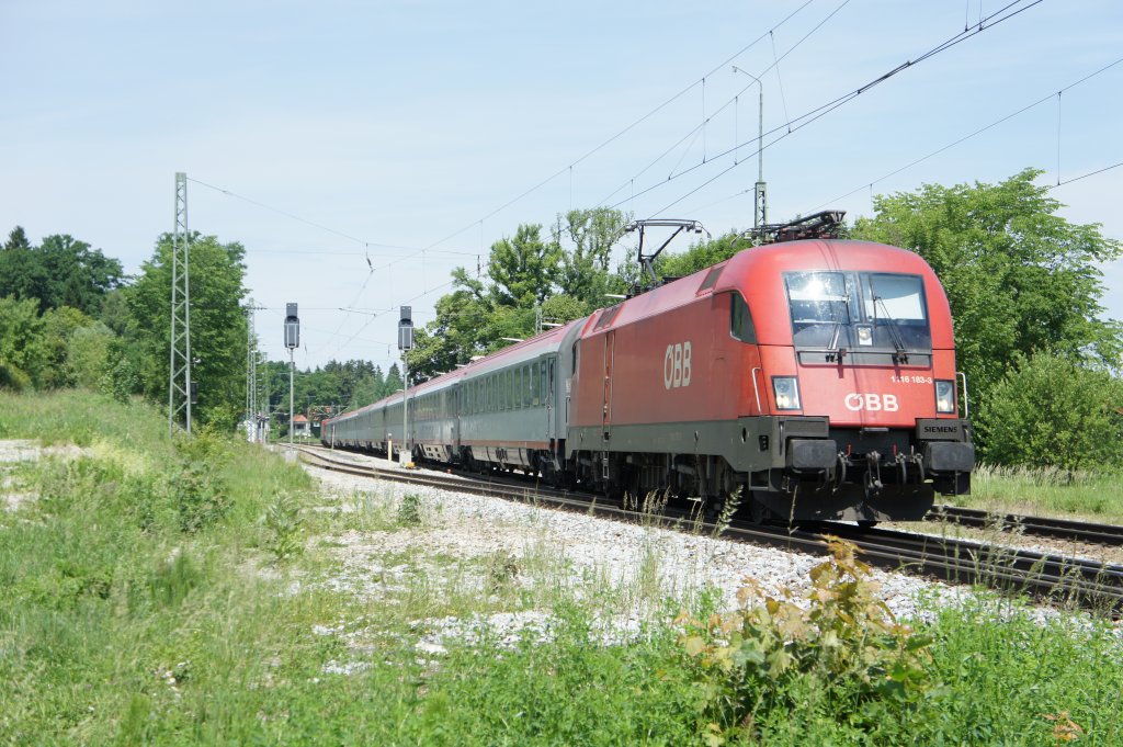 Werbelok 1016 023 "Kyoto" fährt mit IC 538 "Energie Klagenfurt Strom" von Villach nach Wien Meidling.