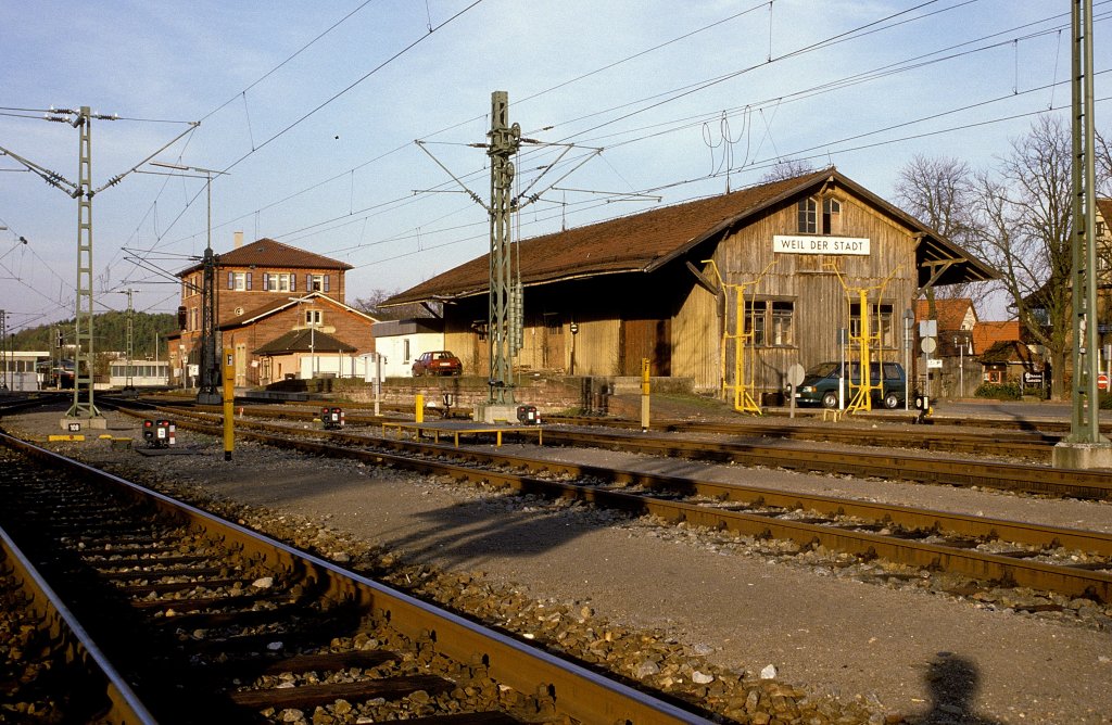 Bhf. Weil der Stadt mit Güterschuppen 1989.