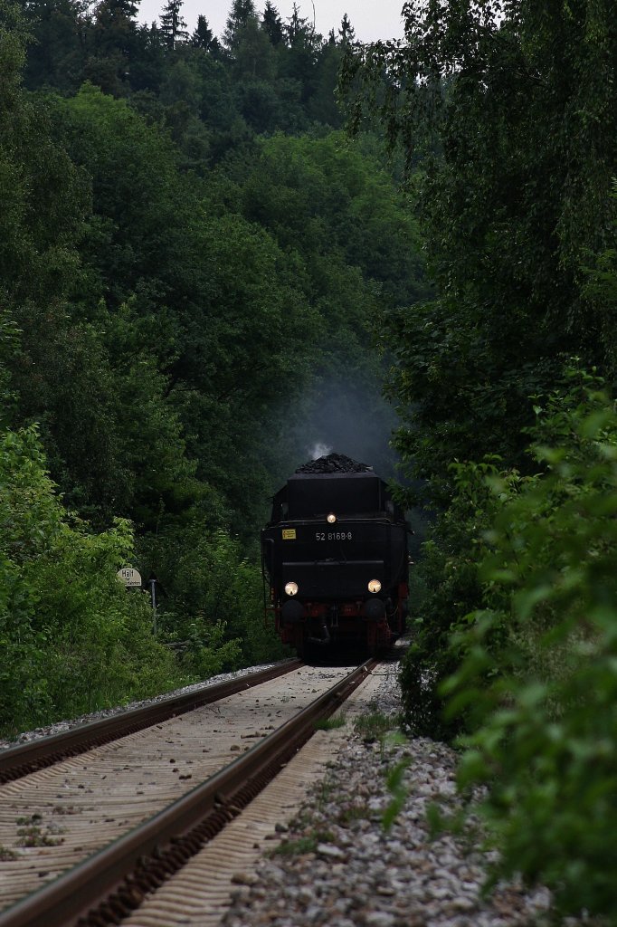 Am 02.06.2011 52 8168 -8 mit Tender voraus Richtung Plattling.