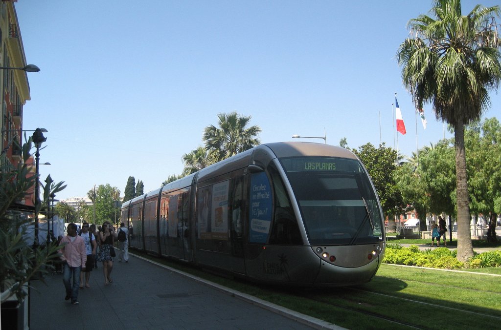Zusammengestaucht sieht die Saarbahn aus bei der Ankunft an der Haltestelle Saarbrücken Hauptbahnhof. 29.05.2011 (Jeanny)