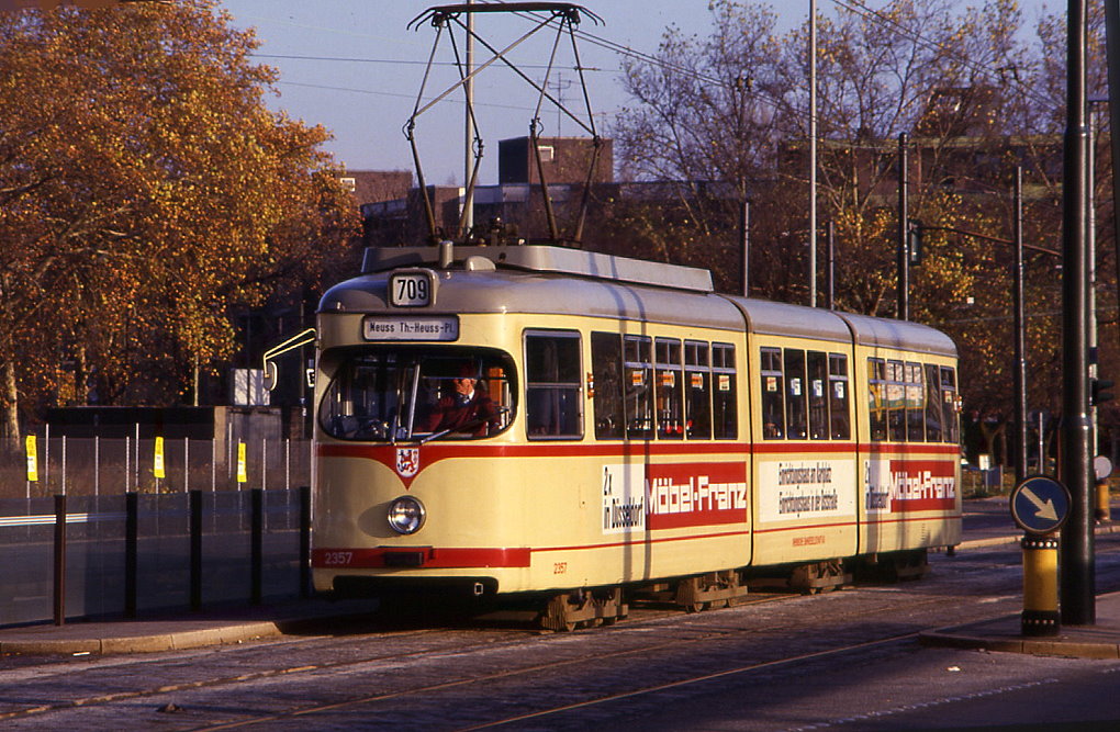 Düsseldorf Tw 2357 an der Haltestelle Schlüterstraße (Grafenberger Allee), 09.11.1986.
