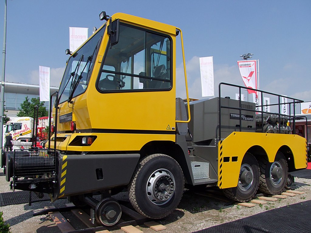Terberg-ZAGRO-Truck RR222-6x4, hat ein Gesamtgewicht von 29Tonnen, Geschwindigkeit: auf Straße (ohne Anhängelast)30km/h; auf Schiene 20km/h (mit Anhängelast); anlässlich der Transport-Logistic; 110513