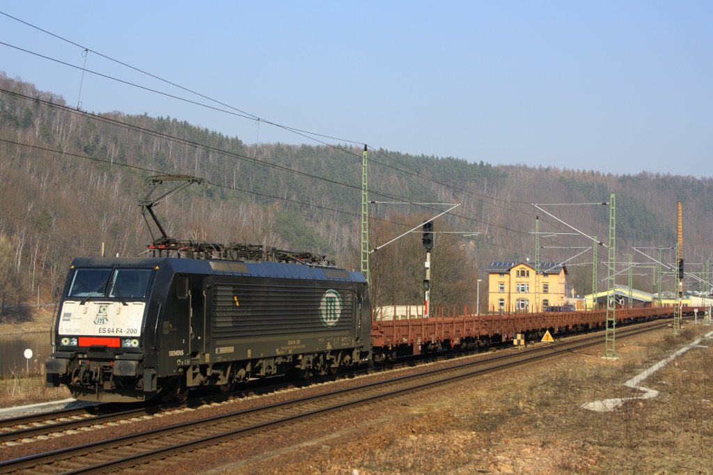 ES 64 F4-200 durchfährt am 01.03.'11 den im Elbtal gelegenen Ort Königstein