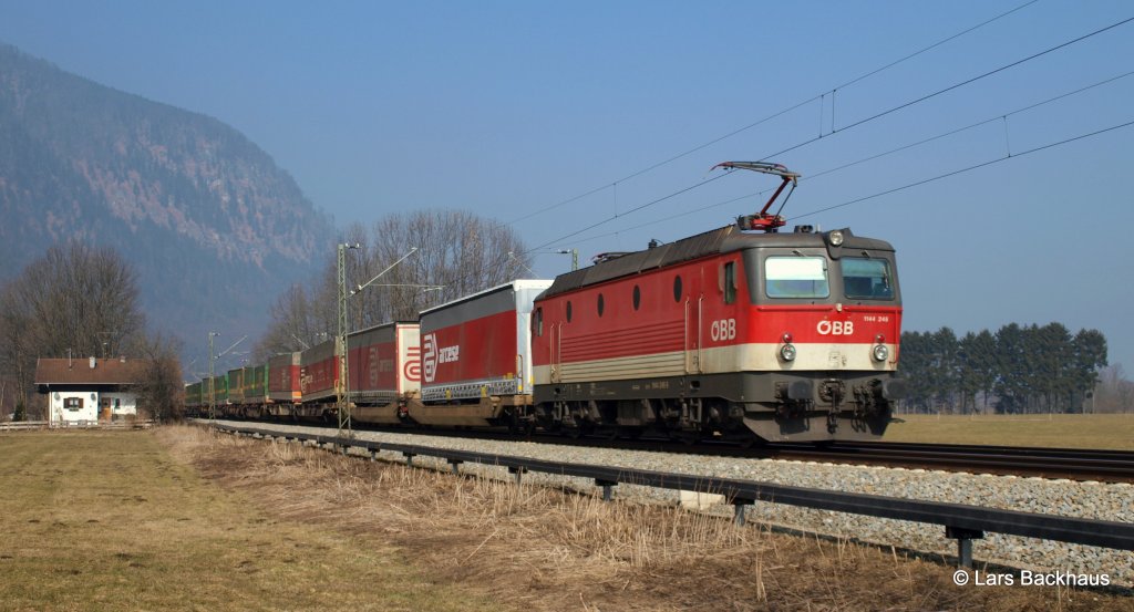 1144 246-6 passiert mit einem KLV-Zug Niederaudorf Richtung Brenner. Aufgenommen am 5.03.11.