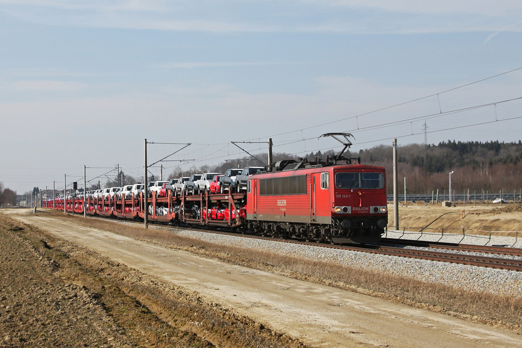 155 143 mit einem Autozug am 09.03.2011 bei Hörbach.