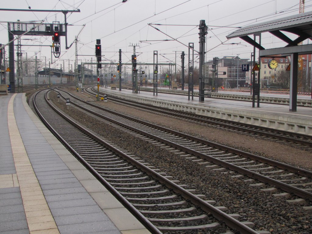 Eine ICE1-Einheit durcheilt am 05.03.11 als ICE 890 den Bahnhof Leipzig Messe.