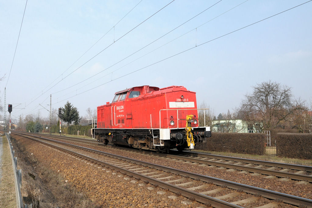 298 335 rollt am 27.01.2011 mit der Übergabe von Theo Steil über die Eberswalder Industriebahn