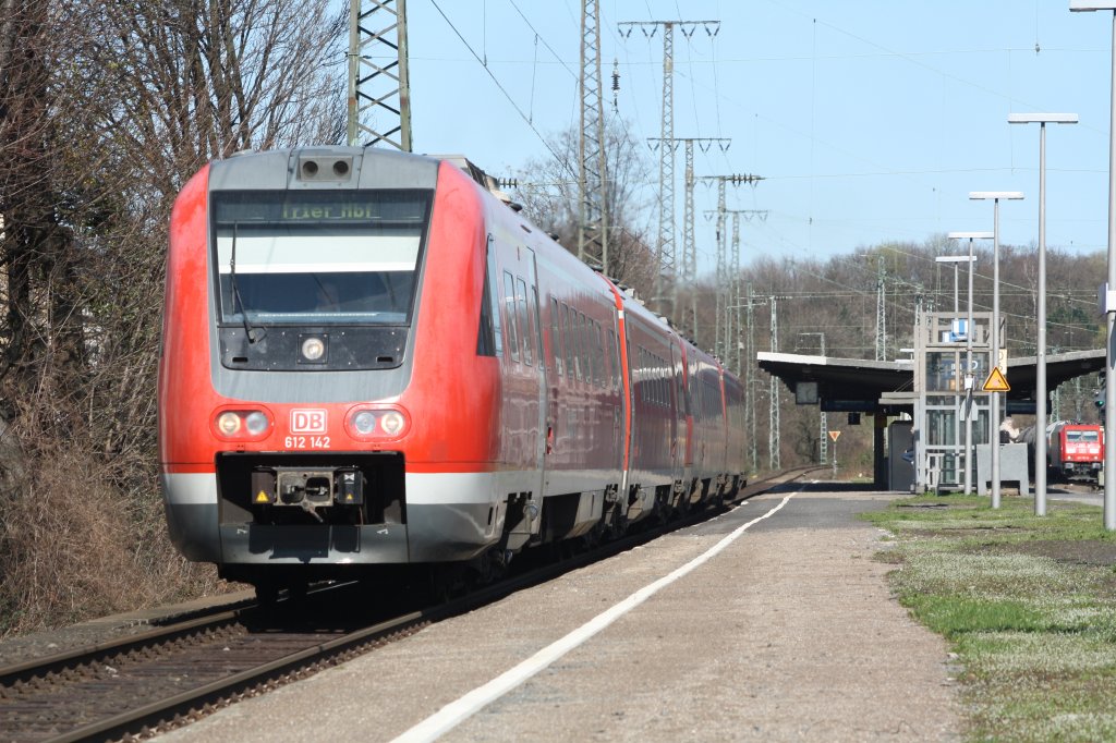 612 594 steht am 19. März 2011 als Regionalbahn nach Saalfeld (Saale) auf Gleis 2 in Kronach.
