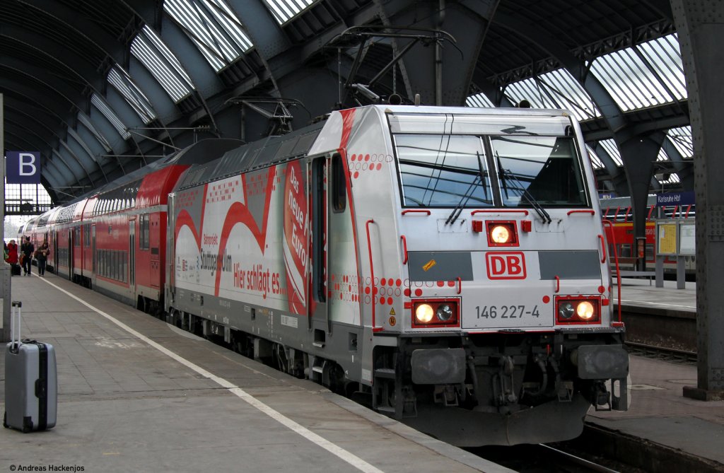 146 227-4 "Bahnprojekt Stuttgart-Ulm" mit dem IRE 4909 (Karlsruhe Hbf-Stuttgart Hbf) am Startbahnhof 19.3.11