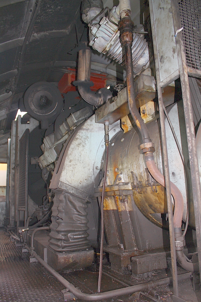 Blick vom Bahnsteig durch die öffene Tfz.-Türe in den Maschinenraum der 540; Bf. Nakhon Lampang am 08.Jänner 2011.