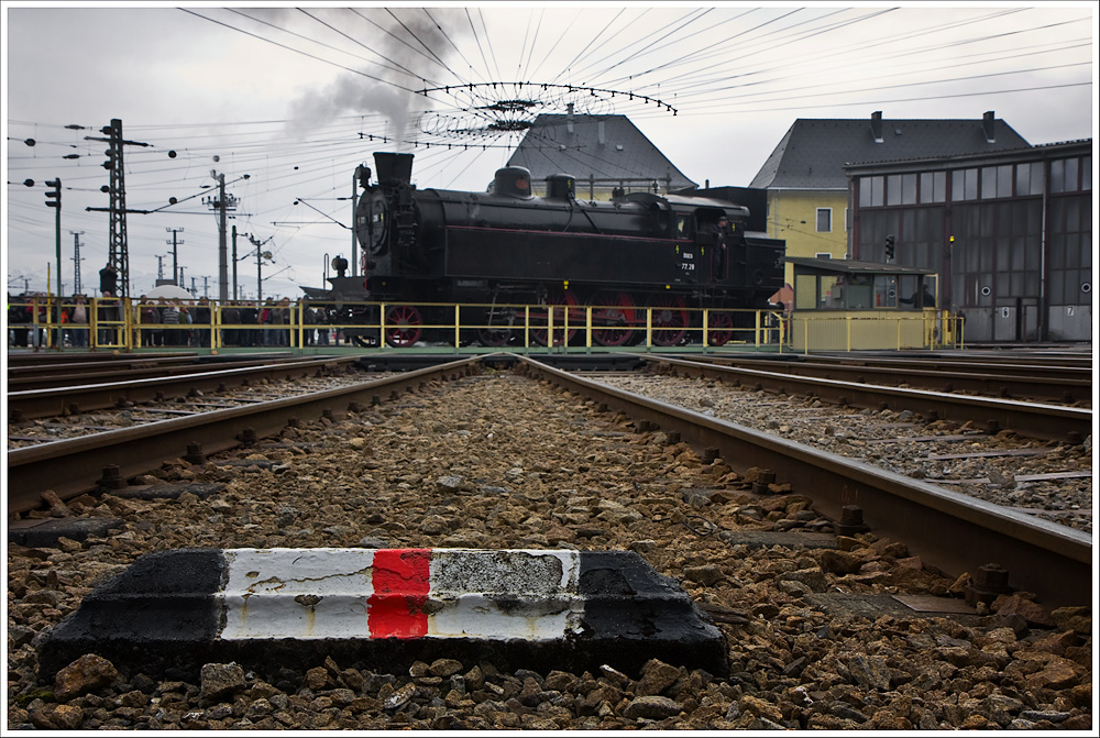 Nach der Ankuft der Sonderzüge in Attnang-Puchheim präsentierten sich alle Dampfrösser im Lokschuppen. 13.3.2011