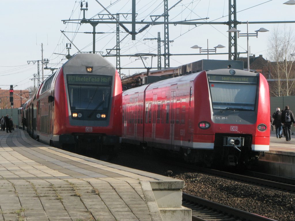 Dostosteuerwagen nach Bielefeld und ein 425 er nach Wolfsburg am 23.03.2011 in Lehrte.