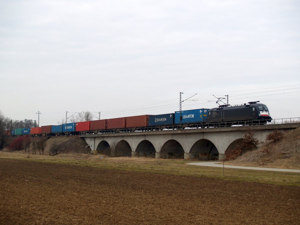 Cobra-Lok 2824 zieht am 27/03/2011 einen Containerzug über den Viadukt von Remersdael in Richtung Visé.