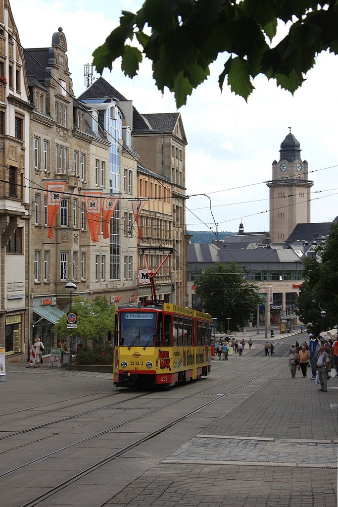 Plauen - PSB/Linie 4 - 231 in der Bahnhofstr. bei Hst. Tunnel am 16.07.2008