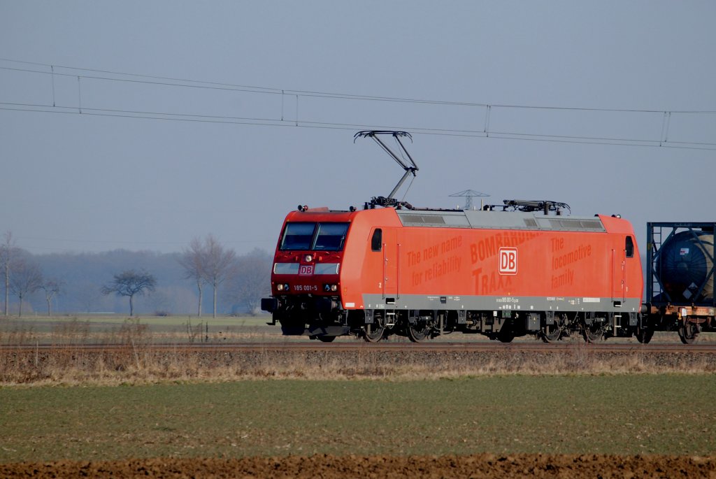 185 611-1 auf dem Weg in Richtung Hauptstadt am 3.März 2011 im Bhf. Nauen