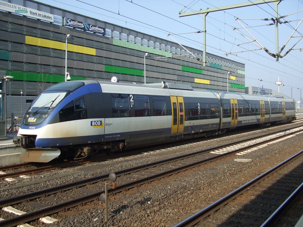 643 628-1 der BOB war am 02.03.2011 führ die NordWestBahn unterwegs. Hier sieht man in kurz vor der Abfahrt aus Bielefeld nach Holzminden.