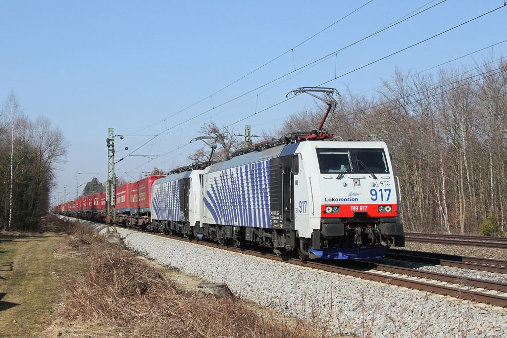 Die bisher einzigen beiden blauen 189er Zebras (917 + 914) waren am 02.03.2011 in Doppeltraktion mit dem Winner KLV DGS 43139 unterwegs. Aufgenommen in Haar bei München.