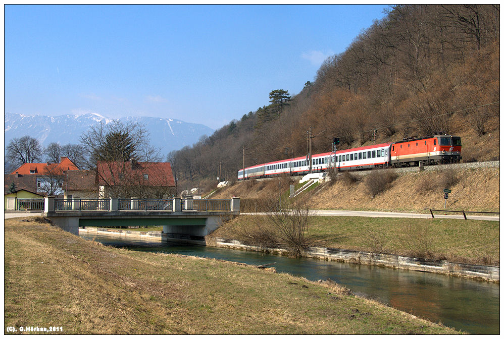 E-Lok 1044 092 im Schachbrettdesign fährt mit IC 531 "Stadttheater Klagenfurt" von Wien Meidling nach Lienz. St Margarethen 30.3.2011