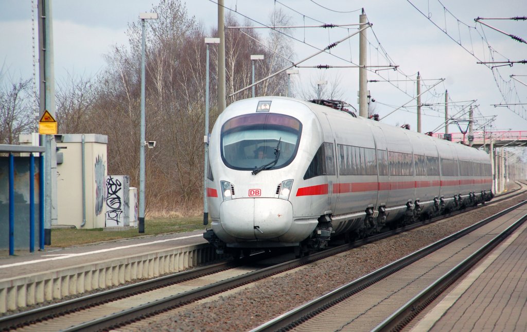 Ein ICE-T der BR 411 durchfährt am 26.03.11 den Hp Bergwitz Richtung Bitterfeld.