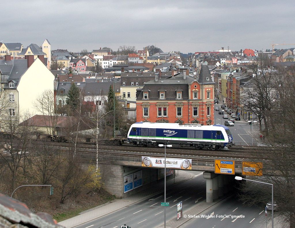 Die ganz frisch neu beklebte 223 144 (ehemals weisser Riese oder Kühltruhe genannt) befährt mit einem Containerzug den sog. Q-Bogen mitten im Stadtgebiet Hof und kommt in wenigen Augenblicken im Hofer Hbf zum stehen. Dieses Motiv gelang mir nur dank des freundlichen Entgegenkommens von Anwohnern, die mich auf ihren Dachboden liessen.....(von der Strasse aus steht man zu niedrig). Das Motiv spukte mir schon lange im Kopf rum und ich hab Verschiedenes ausprobiert. Dies Bild VON HEUTE 31.03.2011 (Sorry!) soll zusammen mit der grade seit wenigen Tagen in dem Design fahrenden Lok mein Bild Nr. 600 in dieser Bahnseite sein!