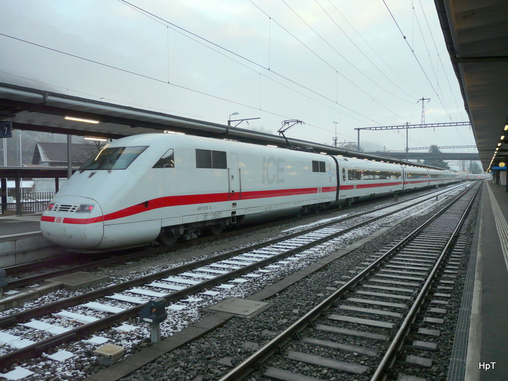 DB - ICE 401 077-3 nach Interlaken Ost unterwegs bei Leisigen am 25.02.2011