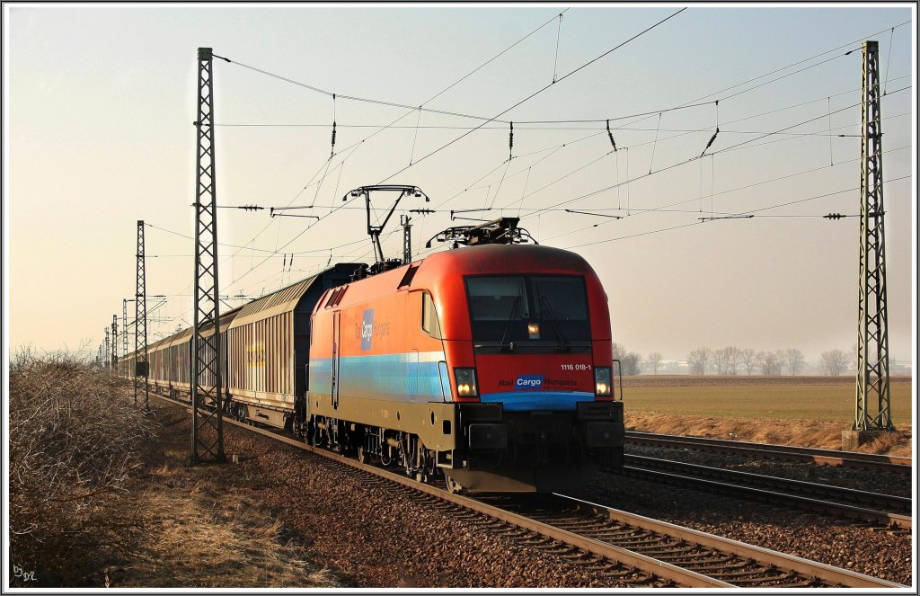 Und das dritte Highlight: 1119 016 "Rail Cargo Hungaria" am Audizug von Ingolstadt nach Györ. Sie wird morgen am Mittäglichen Audizug wieder nach Ingolstadt unterwegs sein. (04.03.2011, Mangolding)