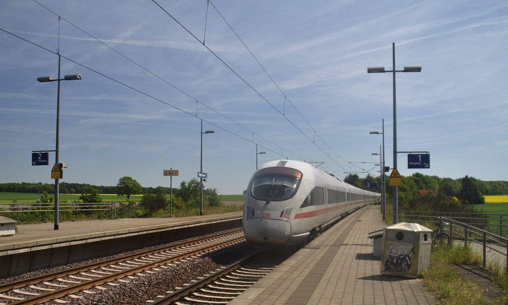 Ein ICE-Triebkopf als Lz gen Norden bei Fulda. 13.05.11