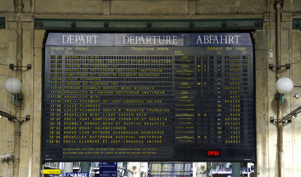 Abfahrtstafel Paris Gare du Nord, 07.05.2011.