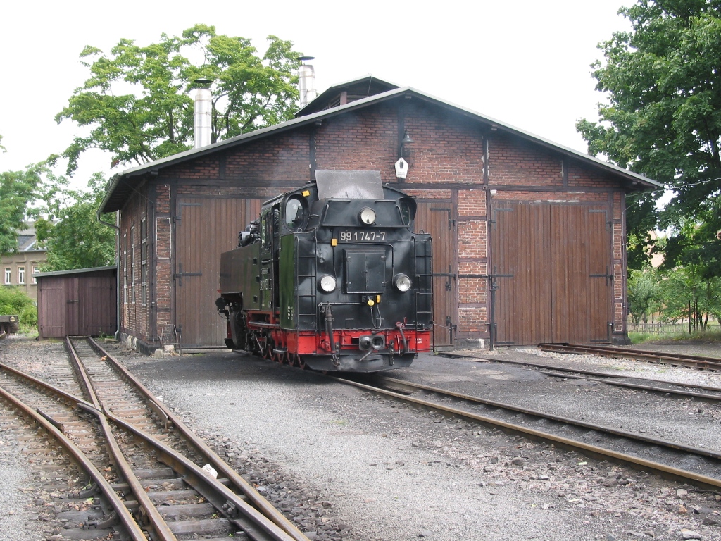 Der Lokschuppen in Radeburg. Kleinbahnromantik am 8. August 2008.