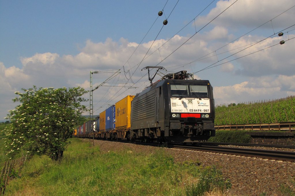 ERS Railways ES 64 F4-997 mit dem DGS 40103 von Maasvlakte West nach Melzo, bei Erbach (Rheingau); 13.05.2011