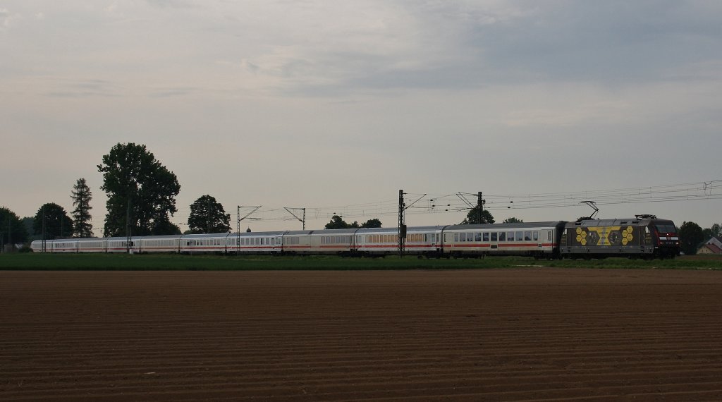 183 001 mit dem Prager am 04.05.2011 auf dem Weg von Prag über München nach Regensburg kurz vor dem Bf Köfering.