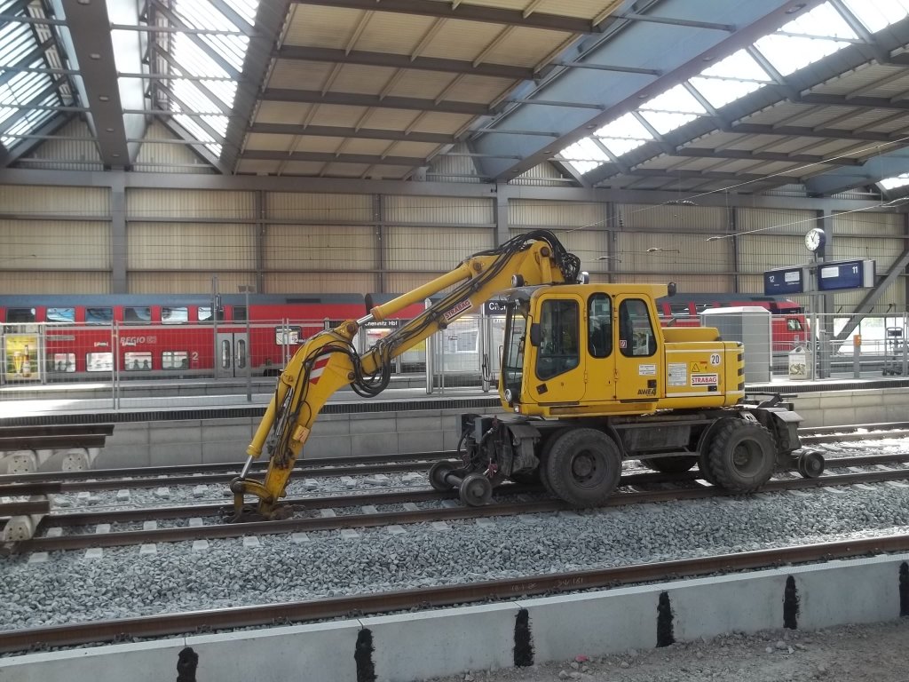 Ein 2-Wegebagger der Strabag genießt m 01.05.2011 seinen Maifeiertag im Chemnitzer HBF.