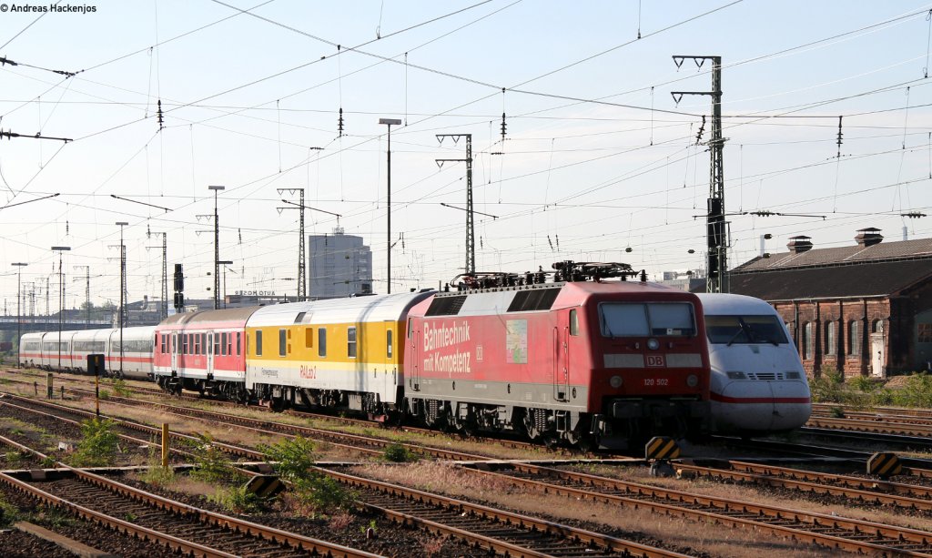 Am 20.05.2011 steht 120 159-9 (ehmalige Werbelok 175 Jahre Eisenbahn) mit einem IC nach Frankfurt (Main) Hbf in Kaiserslautern Hbf