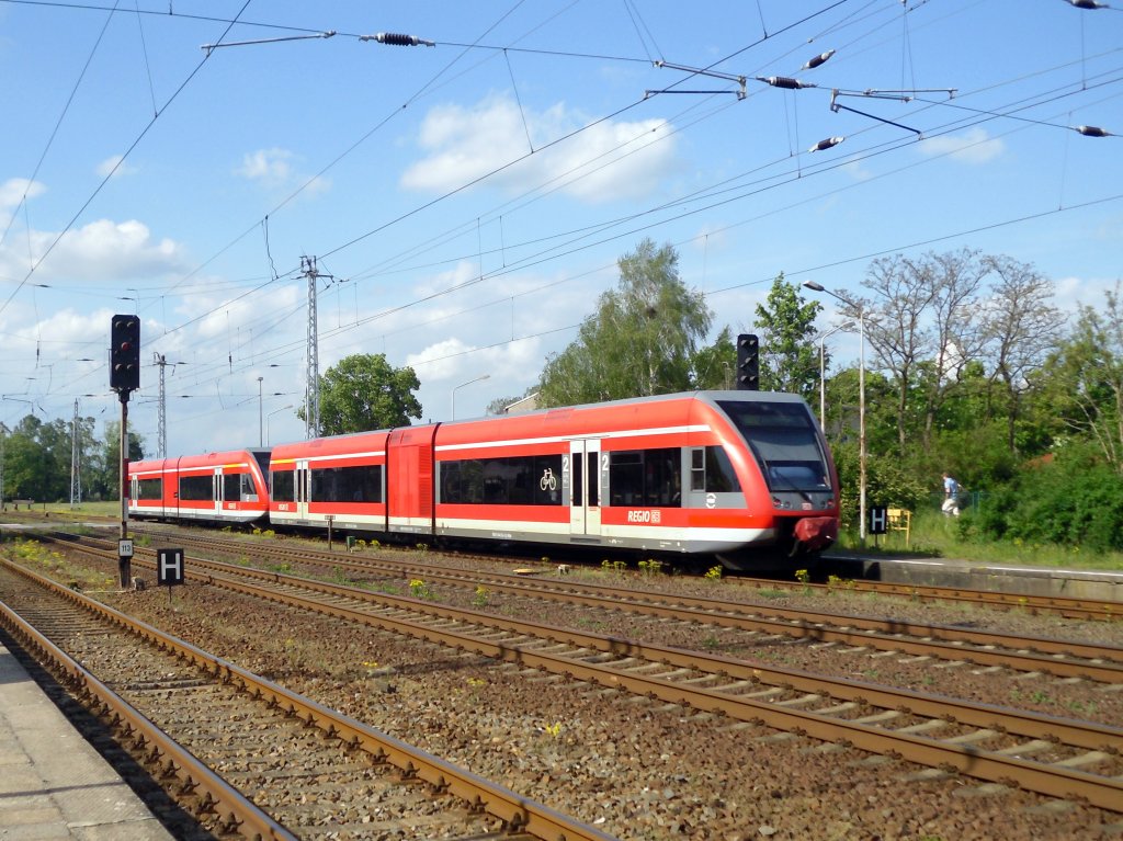 Ein Doppelpack 646-er der RB 12 von Berlin-Lichtenberg nach Templin Stadt. hier bei der Ausfahrt im Bf Nassenheide am 13.05.2011.