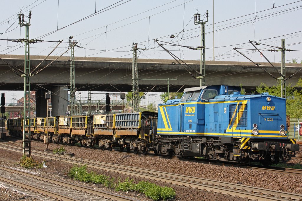 MWB V1202 am 26.4.11 mit Schotterwgen bei der Durchfahrt durch Hamburg-Harburg.