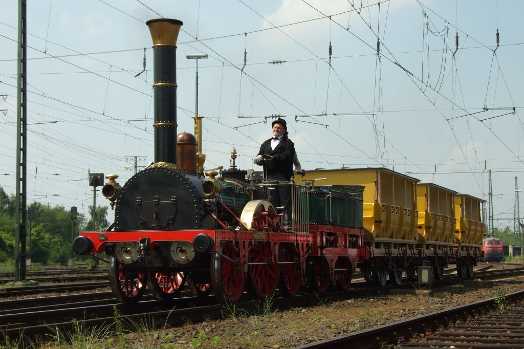 Aus der großen Lok-Parade der Erste. Eine Replika des "Adler" inkl. seiner Wagen mit einem historisch angezogenen Team. Anlass war das 10-jährige Bestehen des DB-Museums Koblenz-Lützel. Koblenz, der 21. Mai 11