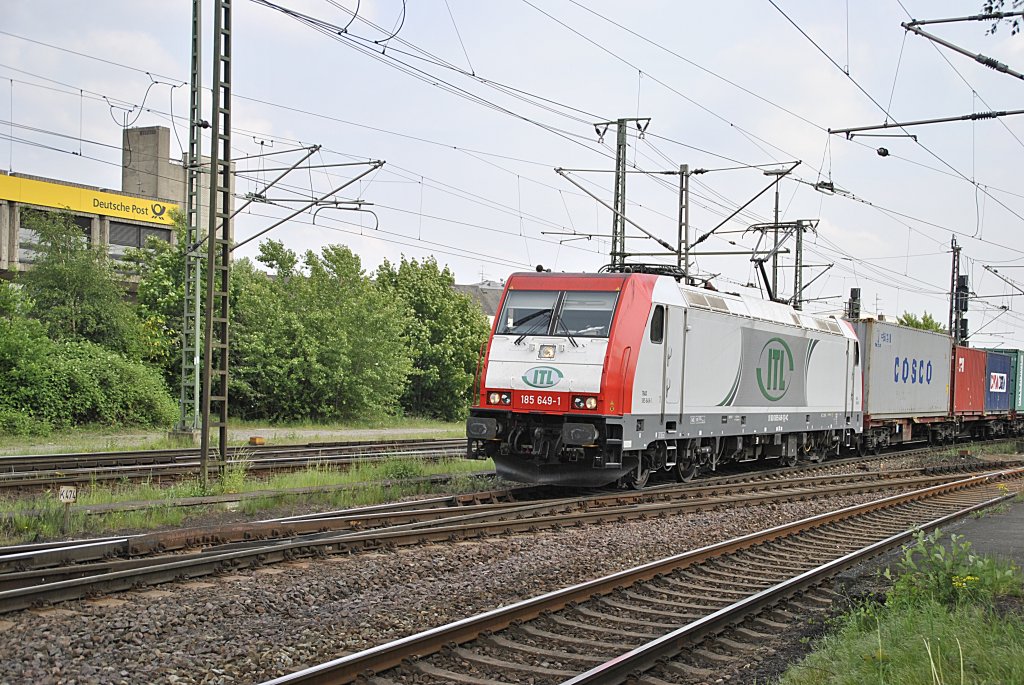 In der Gegenrichtung ist 185 291 (9180 6185 291-2 D-DB) mit einem bunten KLV-Zug in Richtung Norden unterwegs. Ziel dürfte vermutlich Duisburg sein. (18.05.2011)
