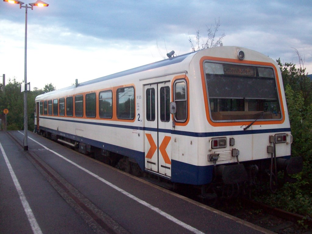 Am Abend des 27.05.2011 steht der SWEG VT 125 im Bahnhof Achern.Er wird in kürze zur Fahrt in seinen Heimatbahnhof Ottenhöfen im Schwarzwald aufbrechen und seinen Tageseinsatz beenden.