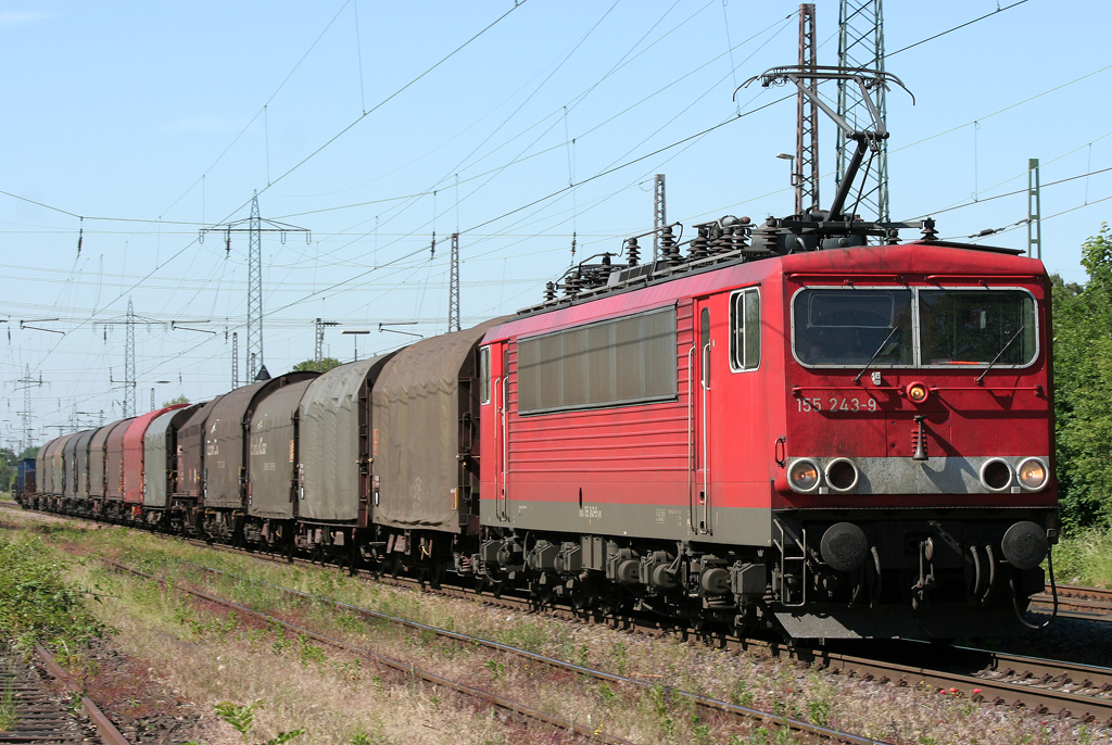 Die 155 143-9 zieht einen Kurzen durch Ratingen Lintorf am 25.05.2011