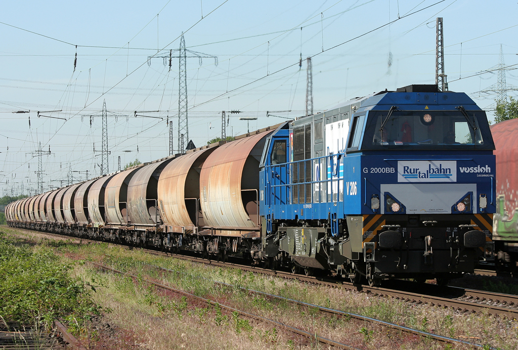 Die V206 der Rurtalbahn zieht Kesselwagen durch ratingen Lintorf am 25.05.2011