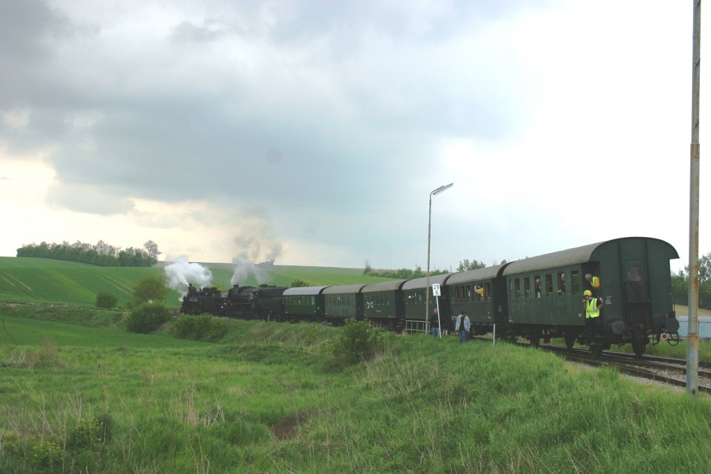 Die beiden Dampfloks 17c372 & 52 100 fahren mit dem SEZ 17300 von Korneuburg nach Ernstbrunn zum 4.Oldtimertreffen auf Strasse & Schiene. Naglern 1.5.2011