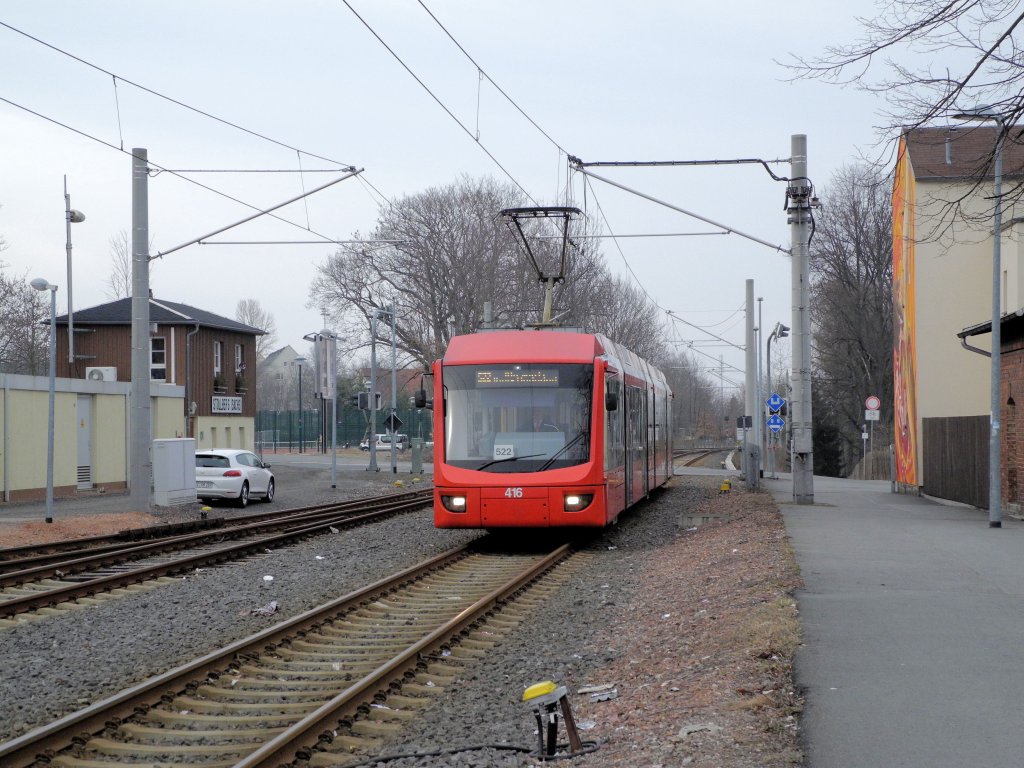 Sonderzug im Bahnhof Nebitzschen, bei der Ausfahrt Richtung Glossen. Aufgenommen am 23.April 2011.