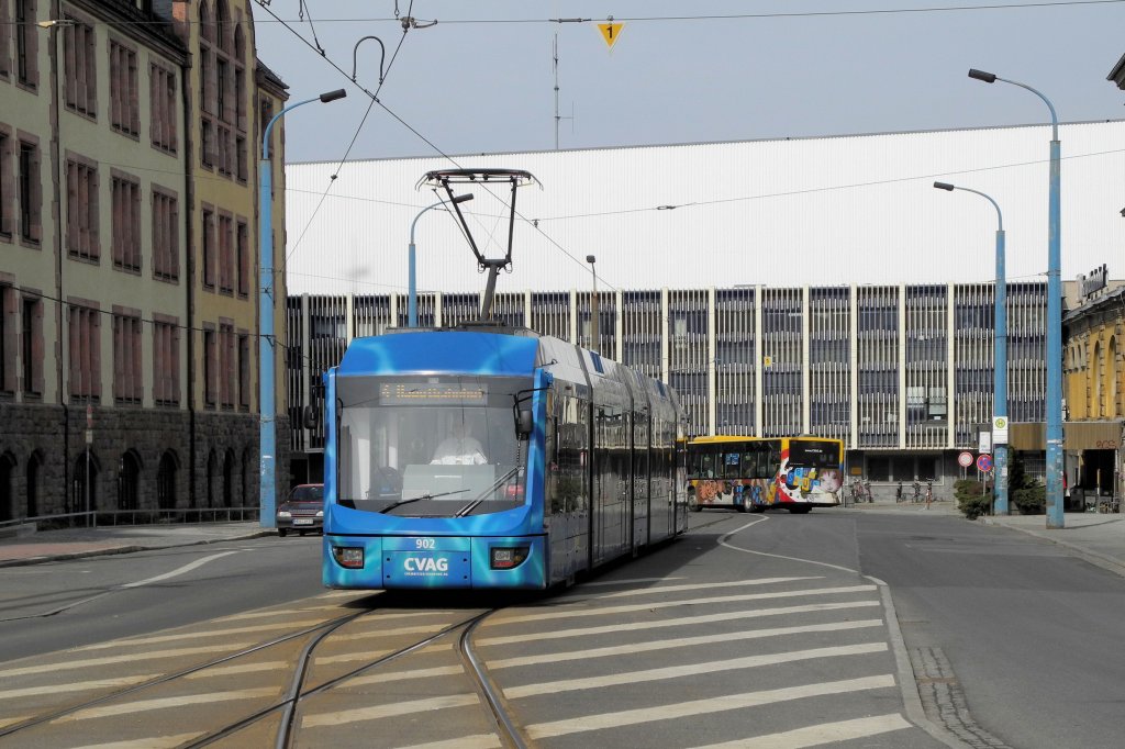 . Ein Ensemble aus Bahn und Masten im Grünen -