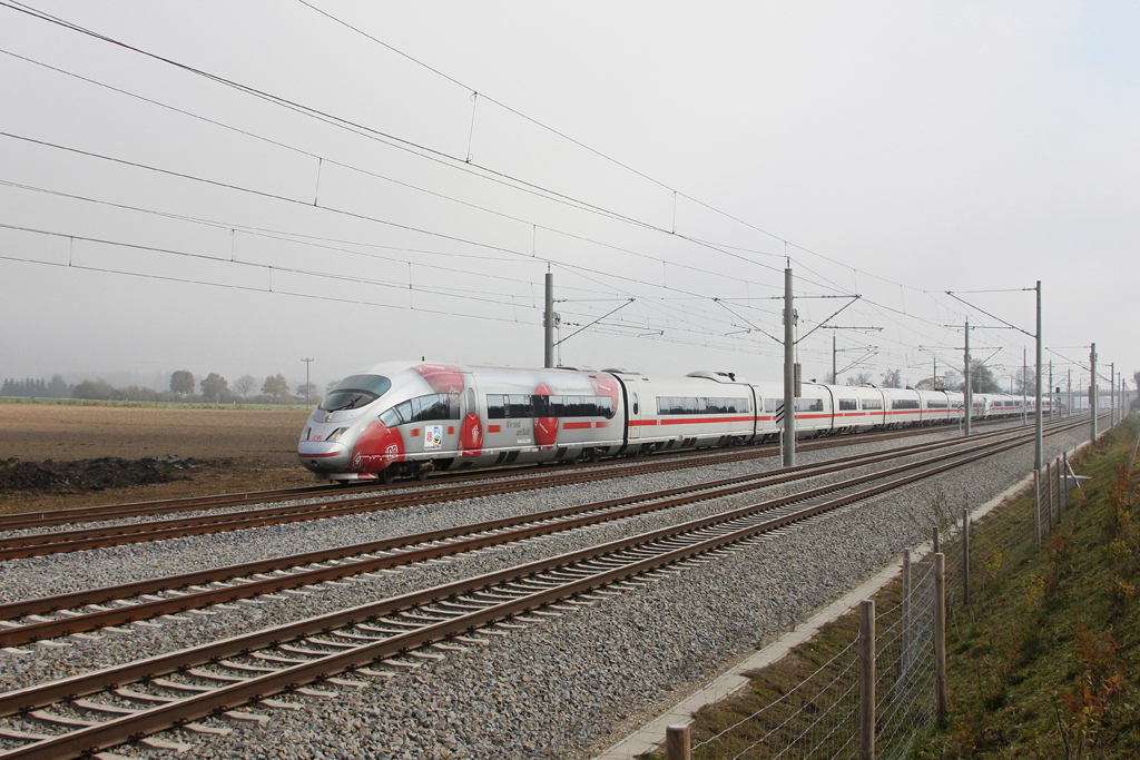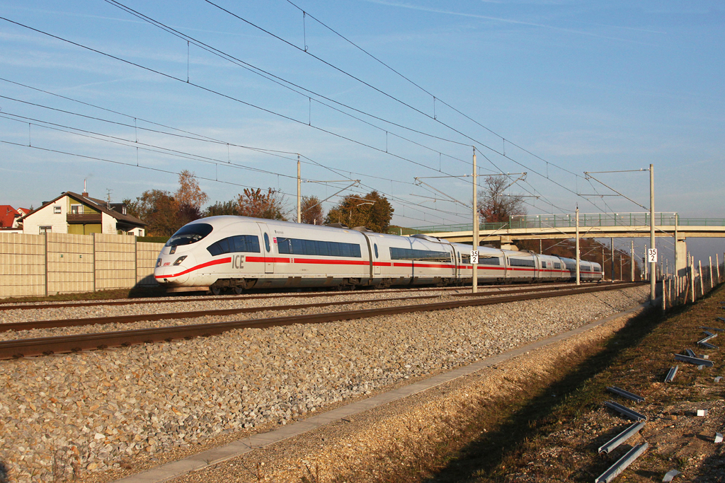 403 054 als ICE 518 am 29.10.2011 bei Hattenhofen.