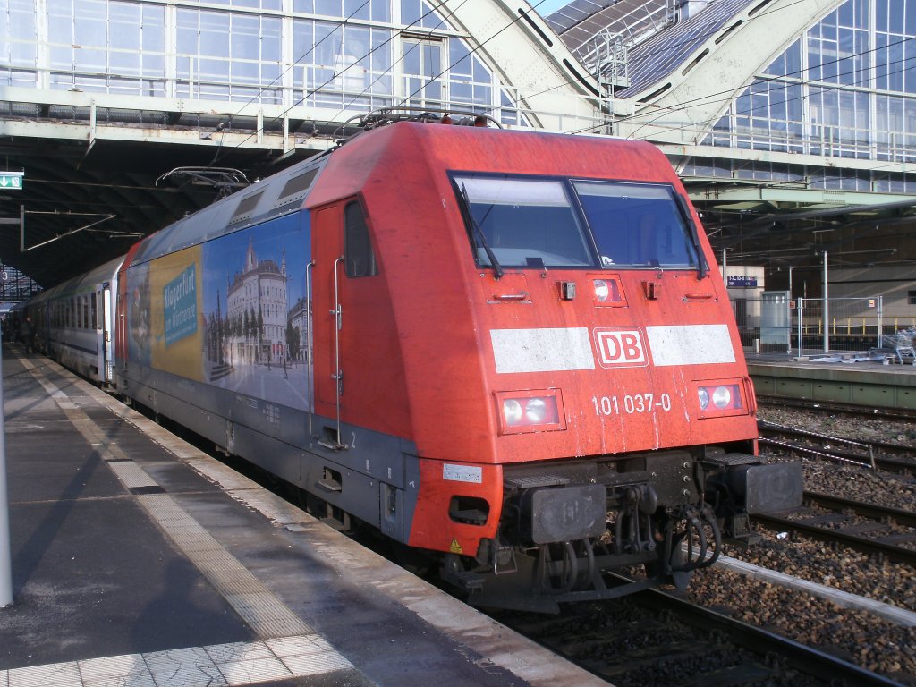 Neben 101 001 wirbt auch 101 037 für Klagenfurt am Wörthersee.Am 29.Oktober 2011 kam die Lok im Berliner Ostbahnhof an.