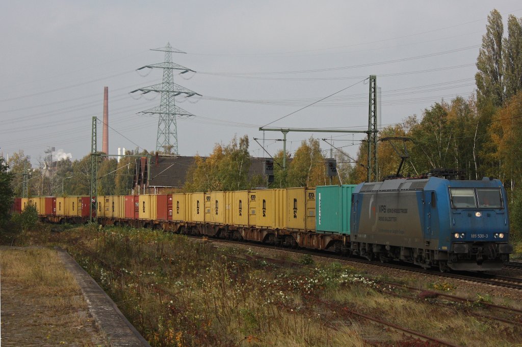VPS 185 530 am 25.10.11 mit einem Containerzug bei der Durchfahrt durch Hamburg-Unterelbe.