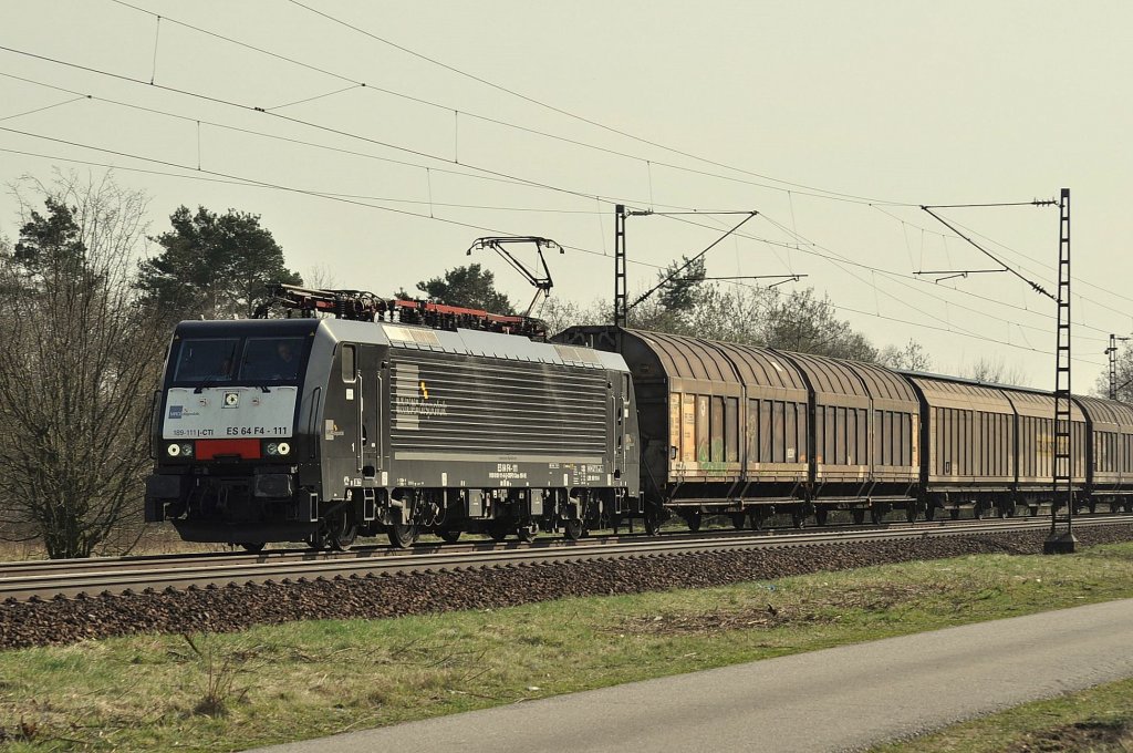 MRCE ES 64 F4-159 am 25.10.11 mit einem Containerzug bei der Durchfahrt durch Hamburg-Ubterelbe.