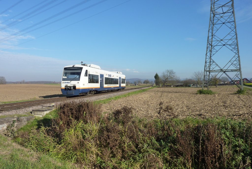 Wagen 845 als S4 von Öhringen-Cappel nach Schwaigern West kurz vor Wieslensdorf. Aufgenommen am 19.11.2011.
