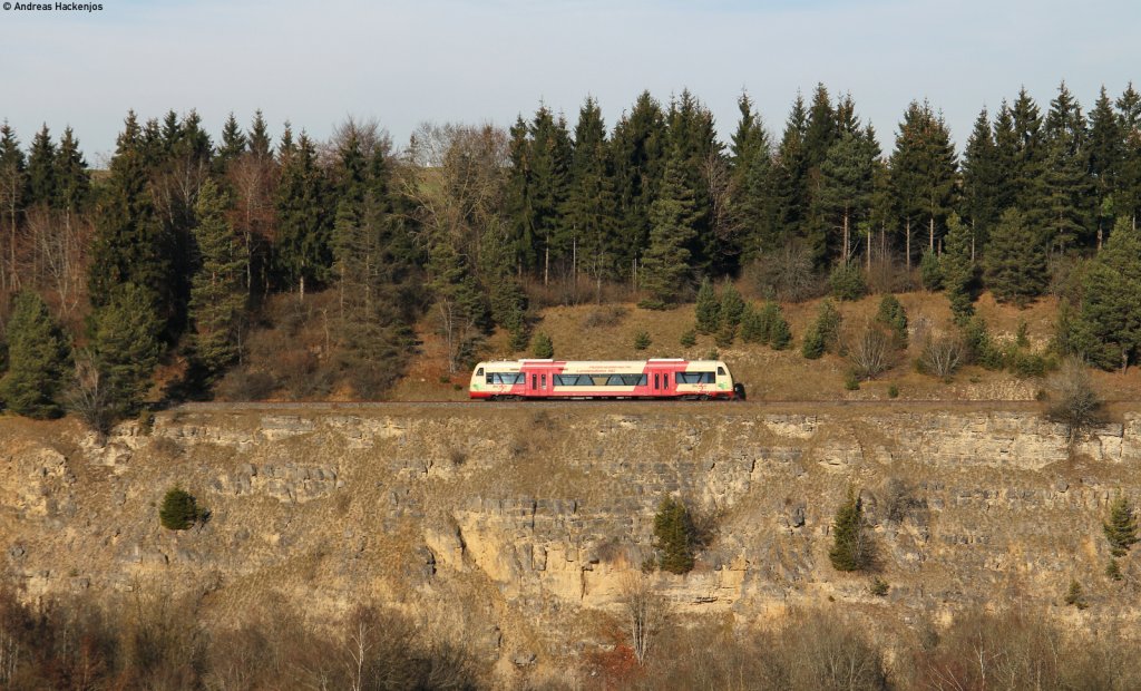 GTW 2/6 der Hellertalbahn kommt von Betzdorf/Sieg mit Fahrtrichtung Neunkirchen, hier am 20.11.2011 kurz vor dem Haltepunkt Grünebacherhütte.